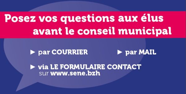– par mail à contact@sene.bzh (en précisant vos coordonnées et l’objet « Questions au conseil municipal ») ;