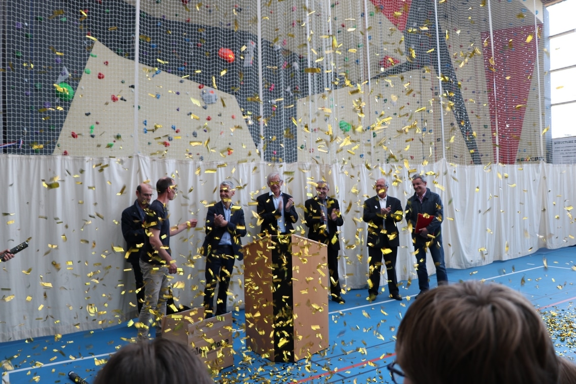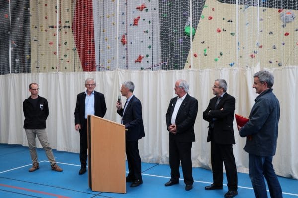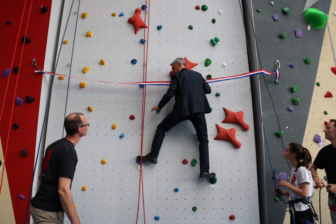 Vendredi 5 mai 2017 a été inauguré le tout nouveau mur d’escalade du gymnase Cousteau.