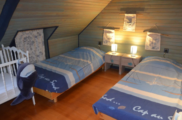– Au 1er étage : 1 chambre avec un lit 2 personnes / 1 chambre avec 2 lits 1 personne + 1 lit bébé / 1 lit 2 personnes