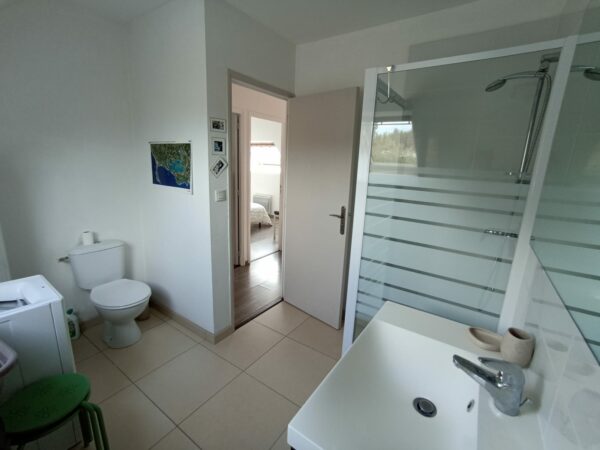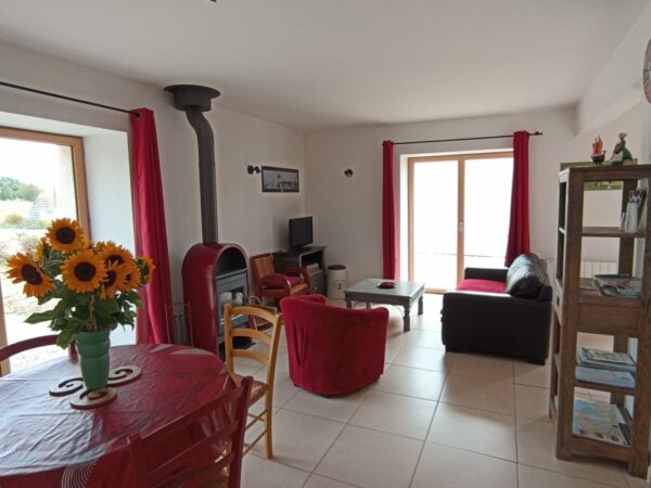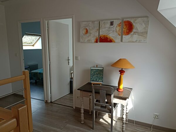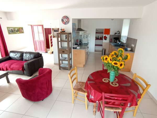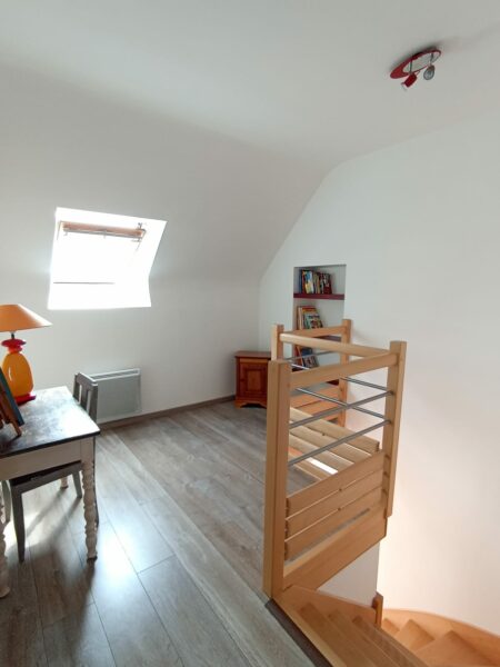 RDC : salon, salle, cuisine, WC / A l’étage : 2 chambres (1 grand lit et 2 lits d’une personne), 1 mezzanine, 1 salle de bain, WC / 1 terrasse avec salon de jardin