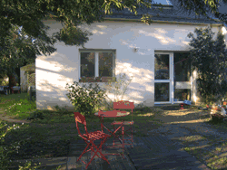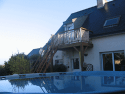 Maison néo-bretonne avec jardin (et salon de jardin) de 600m², piscine hors-sol (4m de diamètre).