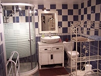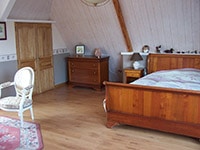 Une chambre avec deux lits, 40 m2 au sol mansardé, salle de bain incluse avec WC