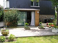 Une chambre avec coin cuisine, salle d’eau privative, terrasse sur jardin