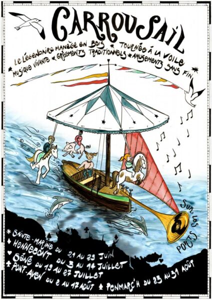 Dans le cadre d’une tournée à la voile traditionnelle entre le Finistère et le Morbihan, découvrez ce manège vintage hipponette, fabriqué à la main, avec chevaux de bois et musique vivante.