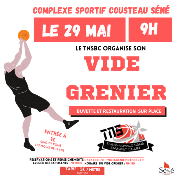 Le Theix-Noyalo Séné Basket Club organise son vide-grenier annuel, le dimanche 04 juin au complexe sportif du collège Cousteau à Séné de 9h à 18h.