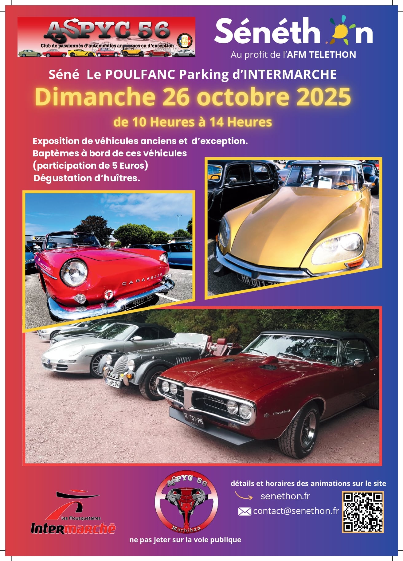 Baptême en voitures anciennes ou de prestige, organisé par ASPYC (Automobiles Sportives de Prestige, Youngtimers et de Collection) au profit de l’AFM Téléthon.