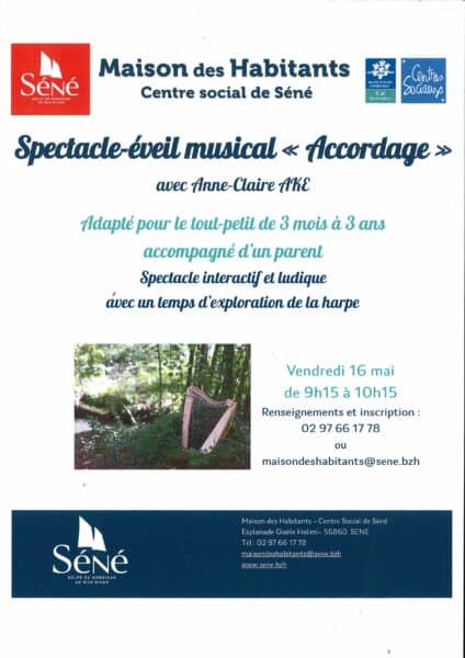 Anne-Claire AKE vient présenter son spectacle « Accordage » adapté pour le tout-petit de 3 mois à 3 ans accompagné d’un adulte. Les spectateurs pourront venir toucher et jouer de la harpe avec l’artiste.