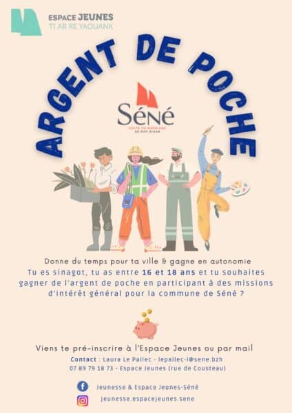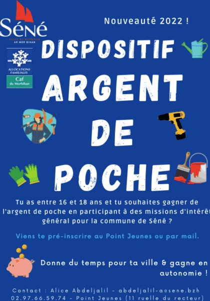 Ouvert aux jeunes de 16 révolus et de moins de 18 ans, le dispositif “Argent de poche” offre la possibilité aux ados de se faire un peu d’argent durant leurs vacances scolaires. Les chantiers proposés concernent des travaux d’embellissement, de rafraîchissement…