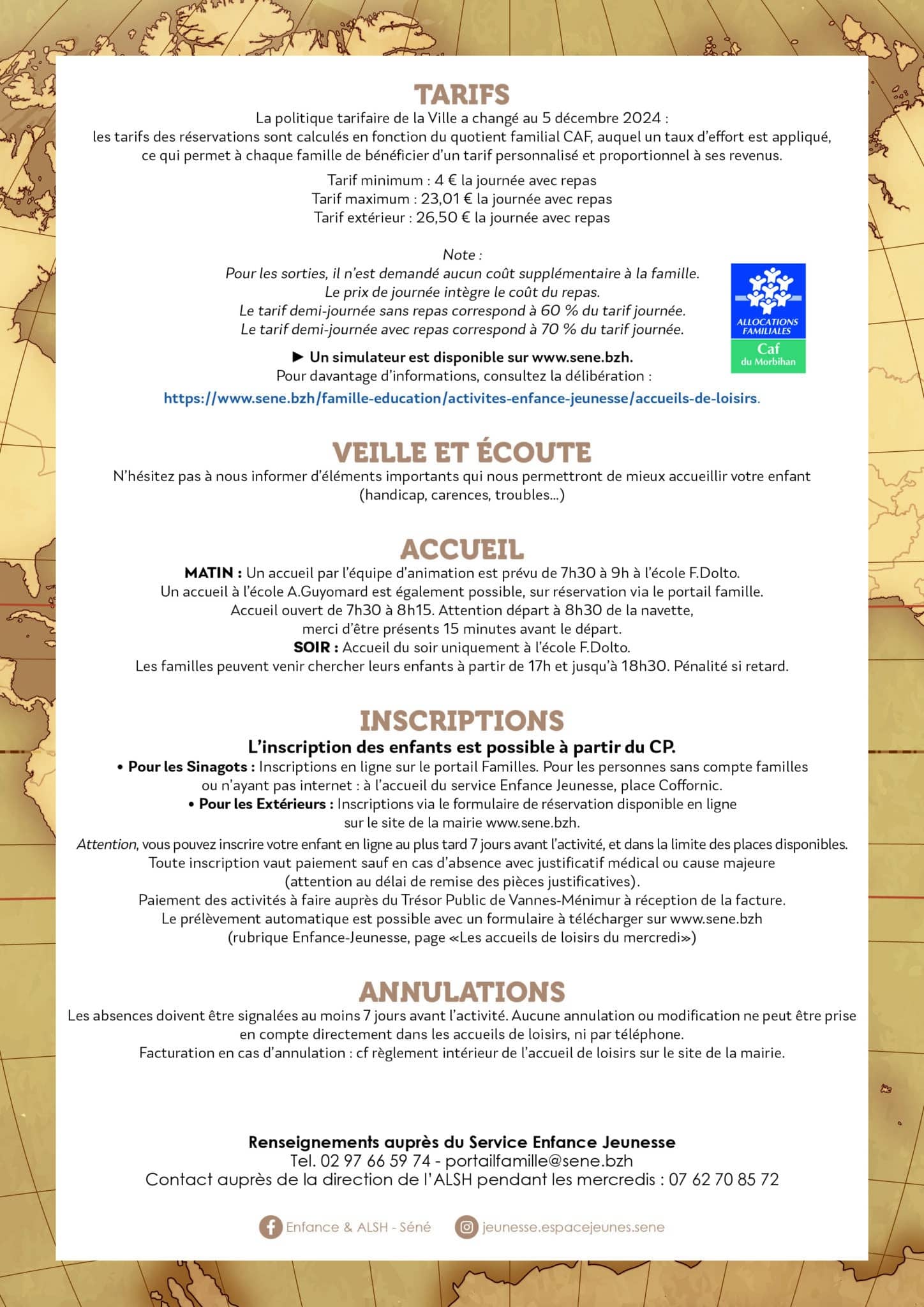 Informations auprès de l’accueil du service enfance-jeunesse en mairie au 02 97 66 59 74 de 9h à 12h30 et de 14h à 17h30 du lundi au vendredi.