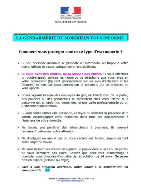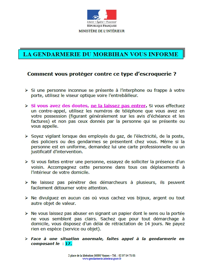 - Ne pas laisser entrer à son domicile de démarcheur, pour quelque motif que ce soit ;