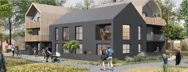 Pour cette résidence, la commune a souhaité aller plus loin dans l’innovation en matière de logement social et expérimenter l’habitat participatif. Cette nouvelle forme d’habitat social combine espaces privés et communs et s’appuie sur un projet de vivre ensemble, pour de la convivialité, du partage et de l’entraide entre voisins de plusieurs générations. À la suite d’un appel à projets, le bailleur social Morbihan Habitat a été retenu pour mettre en œuvre ce projet. Le collectif de 22 logements a été dessiné par l’Atelier Arcau. Il bénéficie d’innovations en matière de logement social :