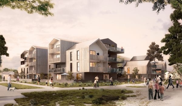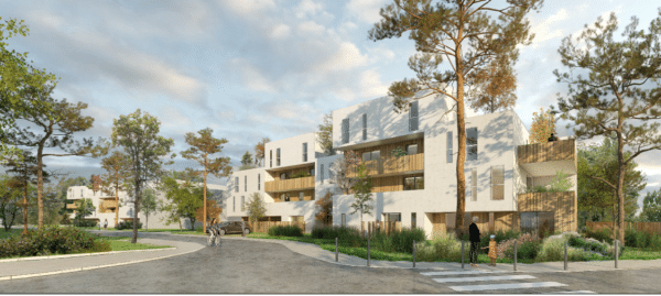 - Une construction durable avec des murs en ossature bois et un bardage bois, pour une faible empreinte carbone, assortie d’une isolation thermique permettant une faible consommation énergétique des ménages.