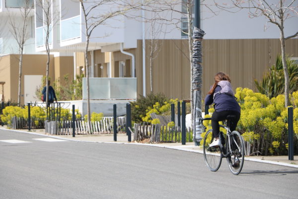Le déplacement et la réduction de cet axe de transit permettent de sécuriser la voie et de l’ouvrir à des modes de déplacement alternatifs à la voiture, grâce notamment à une traversée piétonne sécurisée, ainsi qu’une voie en “site propre” (réservée aux transports en commun et aux cycles). Un réseau de cheminements doux relie les différents équipements du quartier, dont l’école, pour rejoindre le réseau des voies cyclables de l’agglomération.