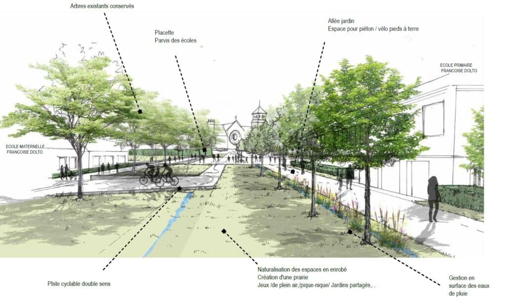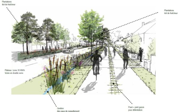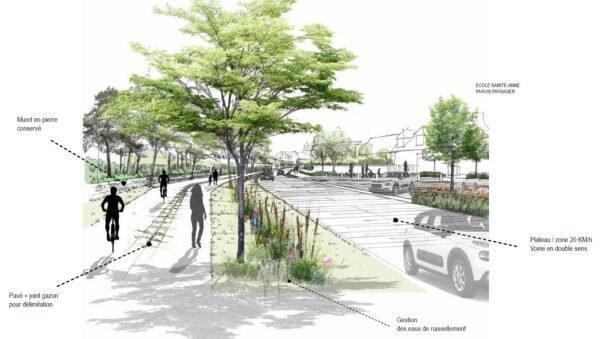 - Création d’espaces piétonniers en haut de rue et au niveau de l’école Sainte-Anne.